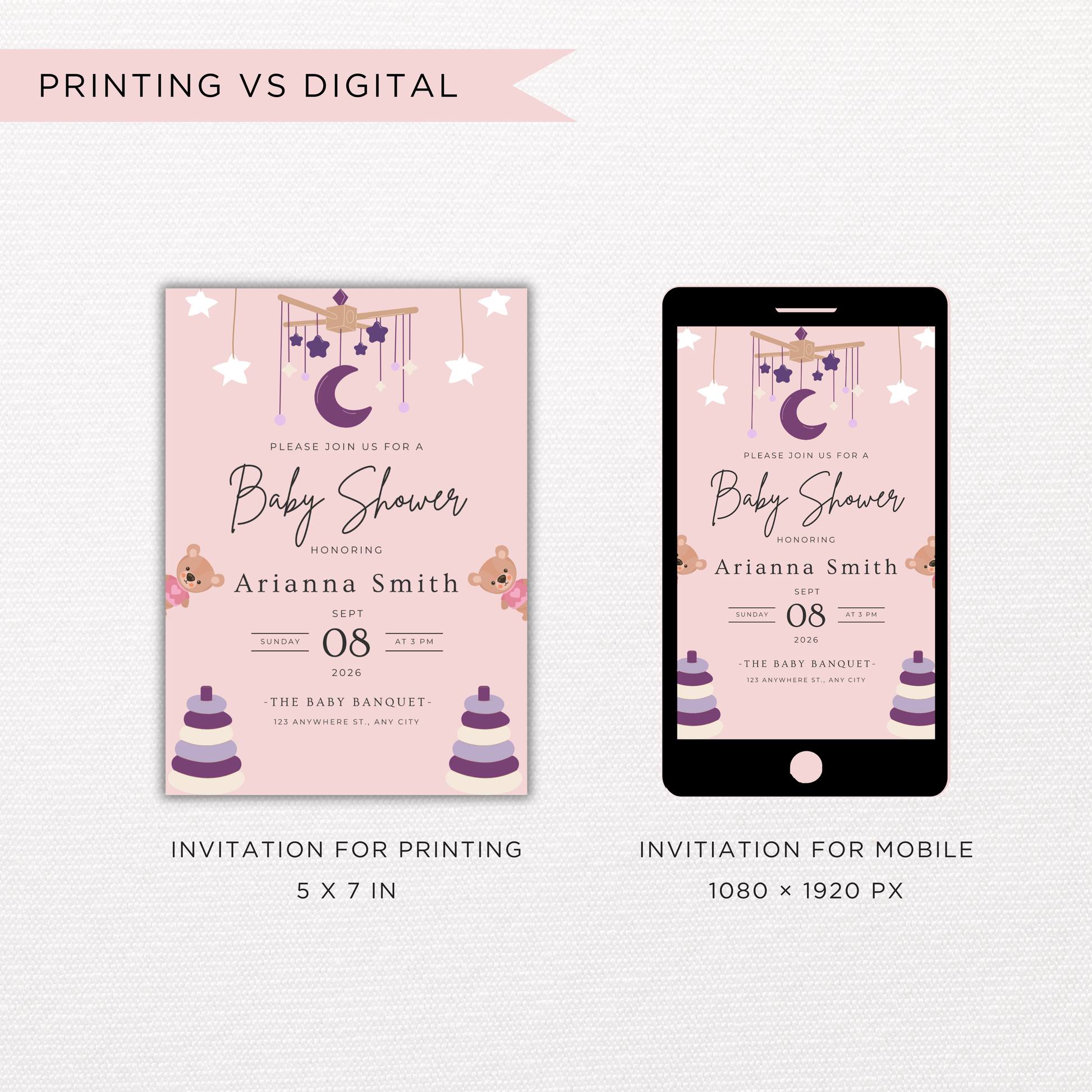 ✔ Invitation size: 5 x 7 inches