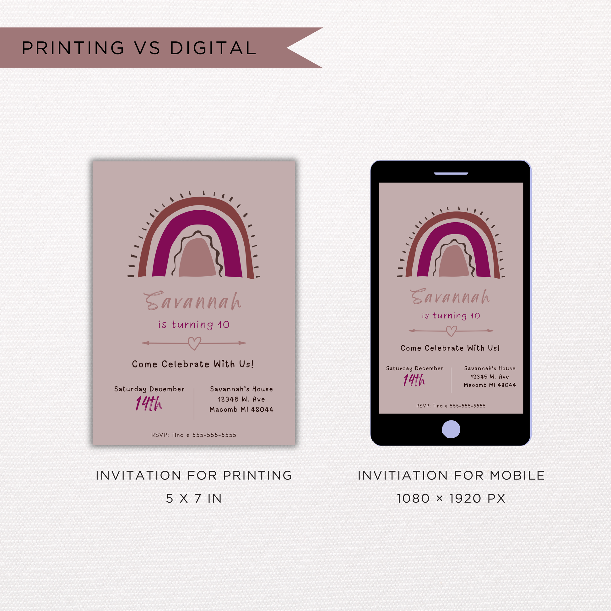 ✔ Invitation size: 5 x 7 inches