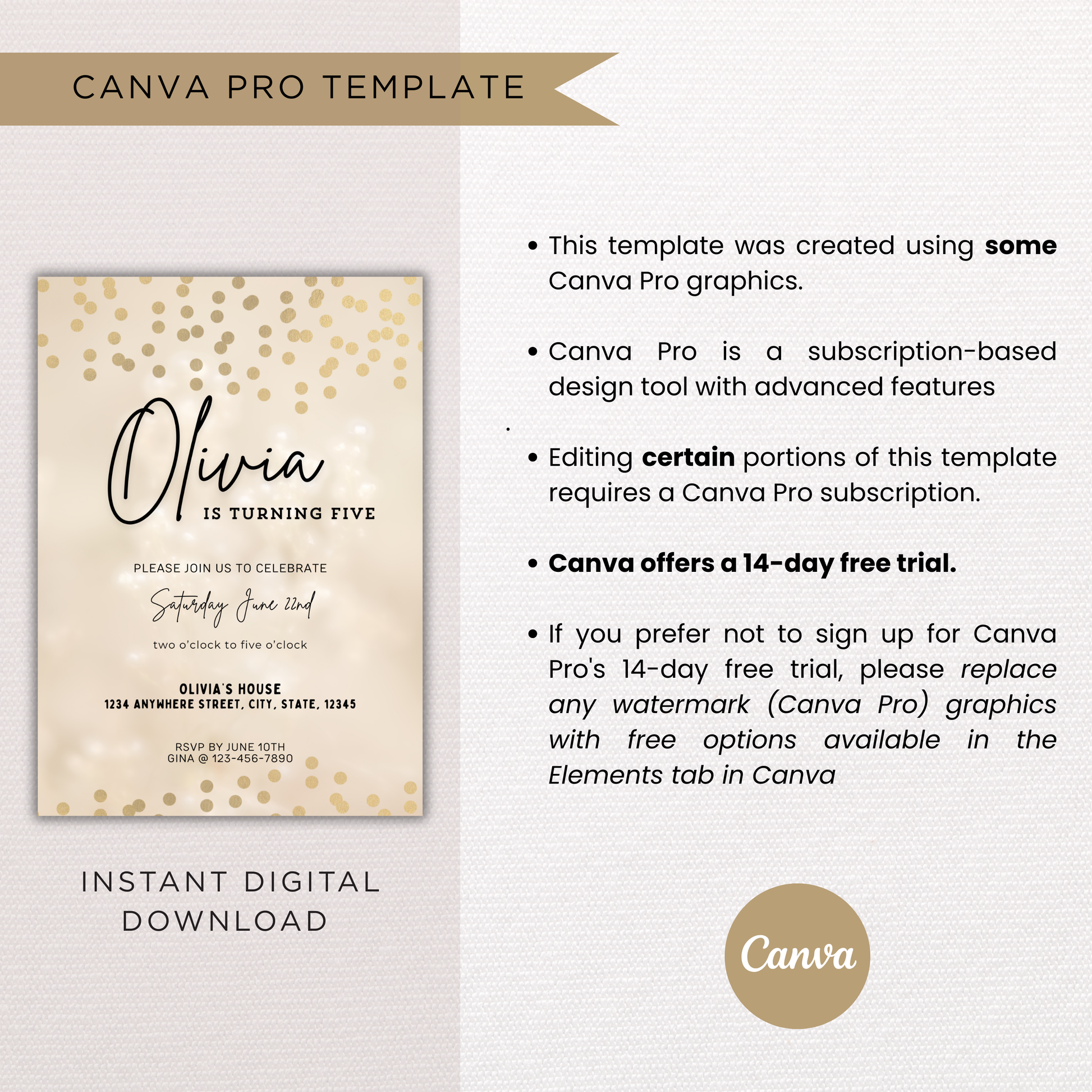 Gold Birthday Invite | Canva Template