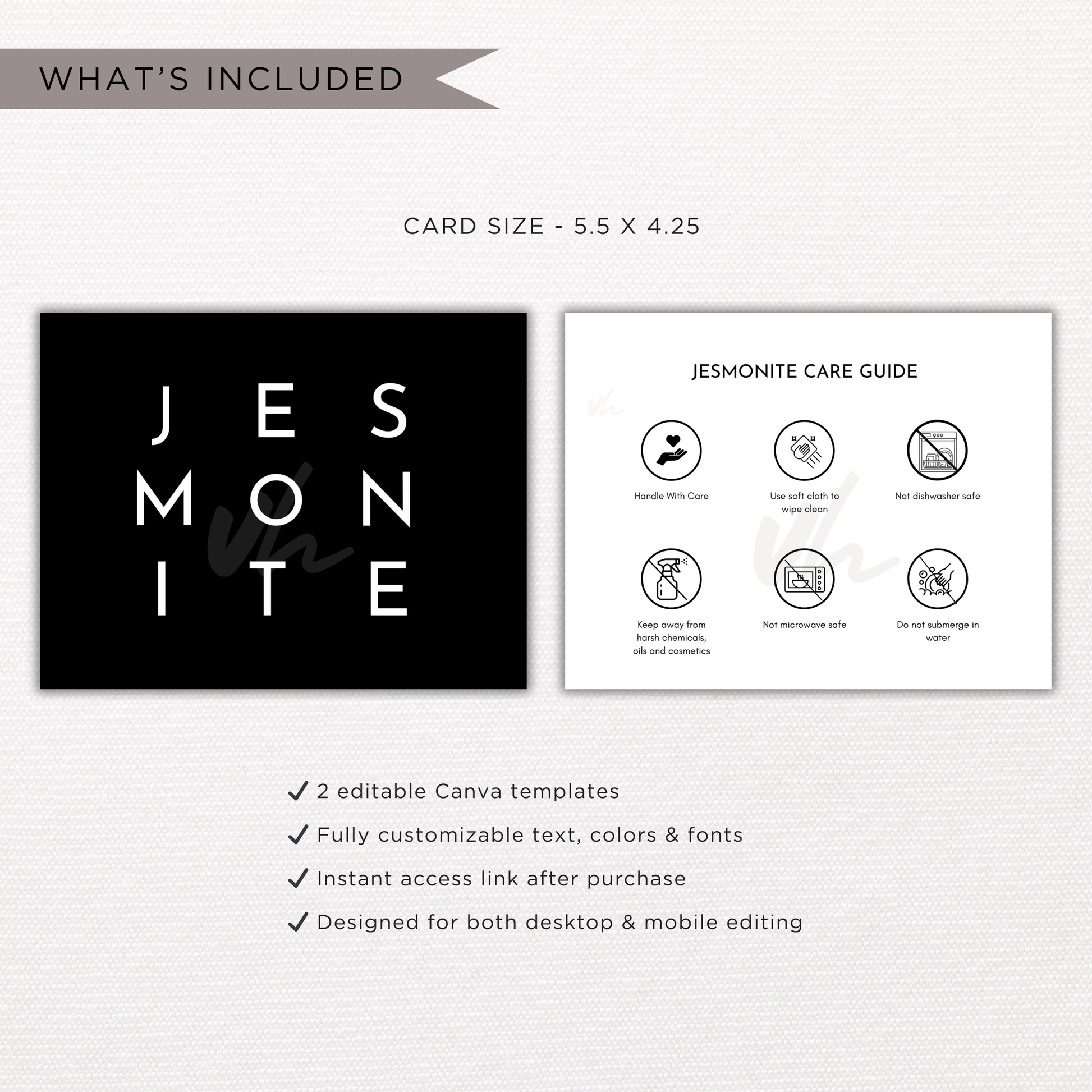 Add a polished, professional touch to your handmade Jesmonite products with this editable care card template. Designed for packaging and order inserts, this Canva template clearly communicates care instructions while seamlessly aligning with your brand aesthetic.