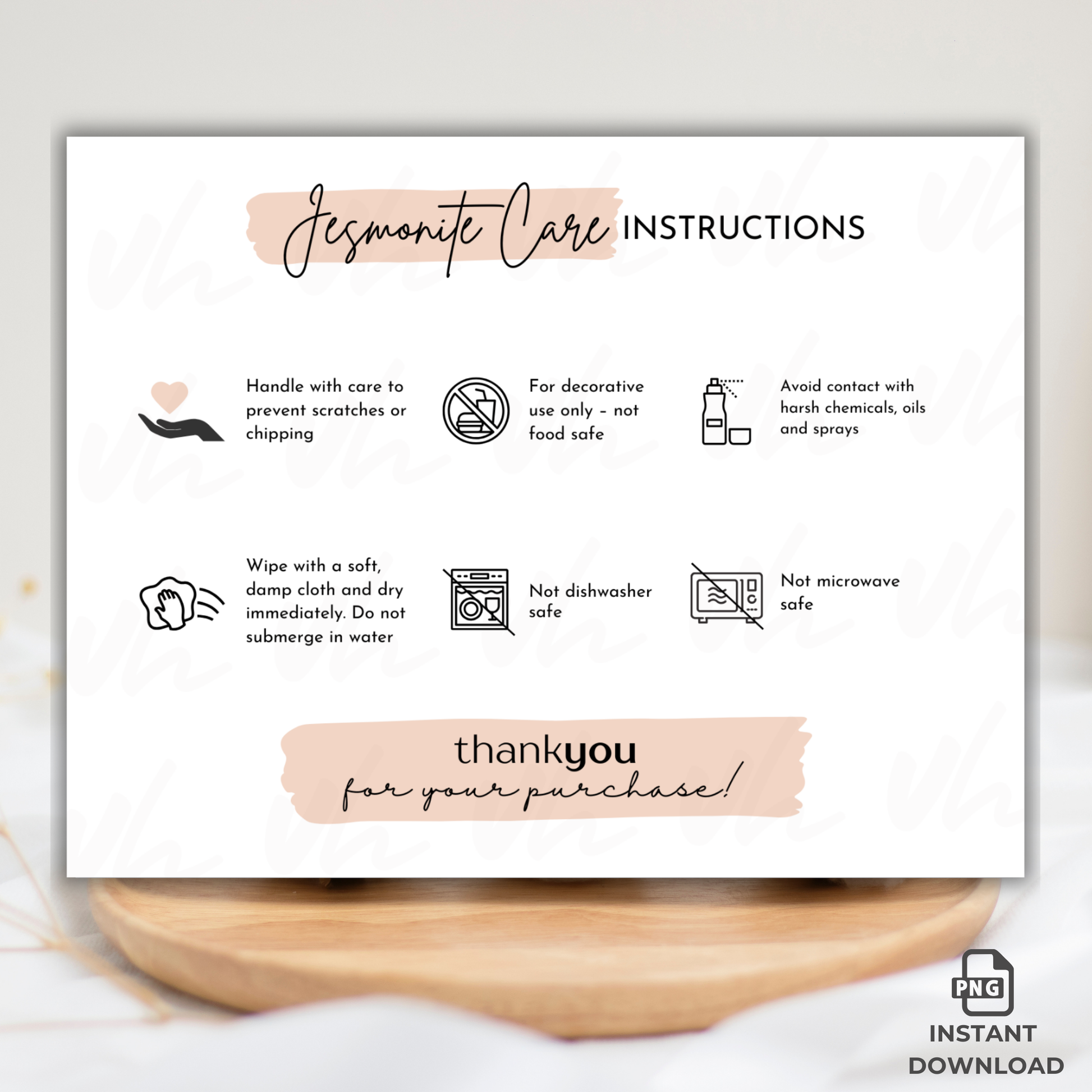Enhance your packaging with this sleek Jesmonite Care Card, designed to provide clear care instructions for your handmade products. This high-quality PNG file is ready to use instantly, giving your brand a professional and polished touch.