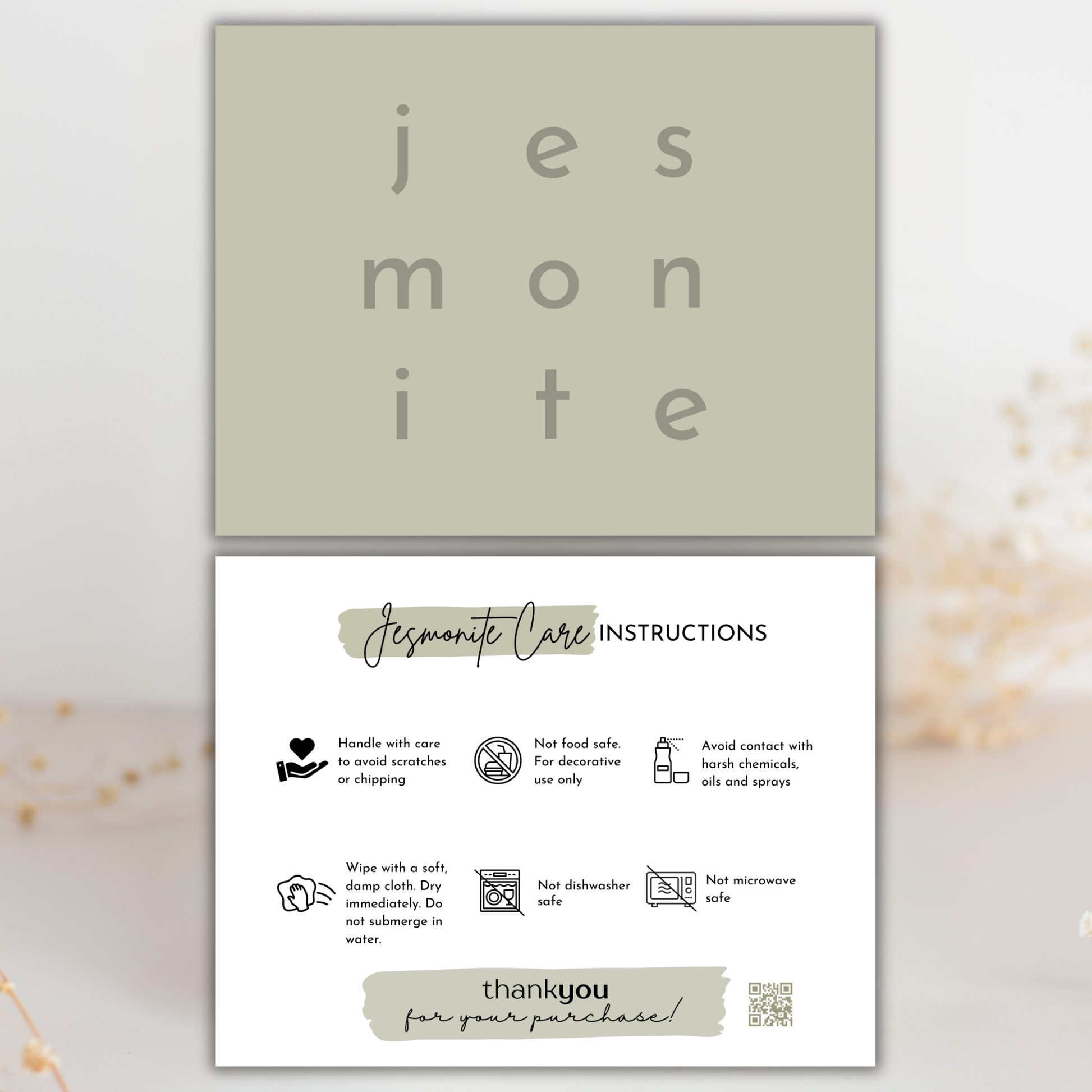 Add a professional finishing touch to your handmade Jesmonite products with this editable care card template. Perfect for packaging and order inserts, this Canva template helps clearly communicate care instructions while matching your brand style.