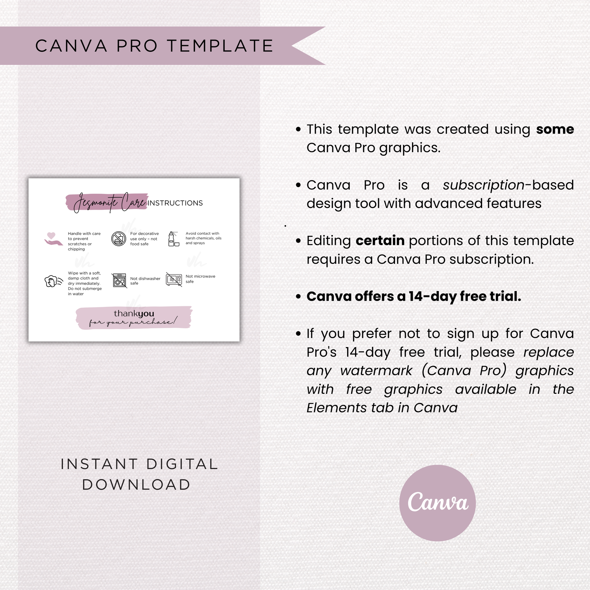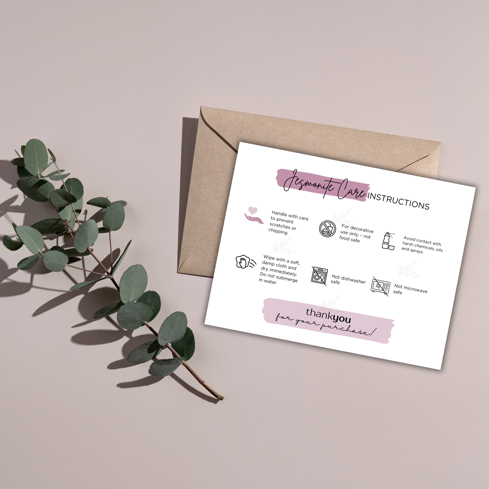 Jesmonite Care Card | Canva Template