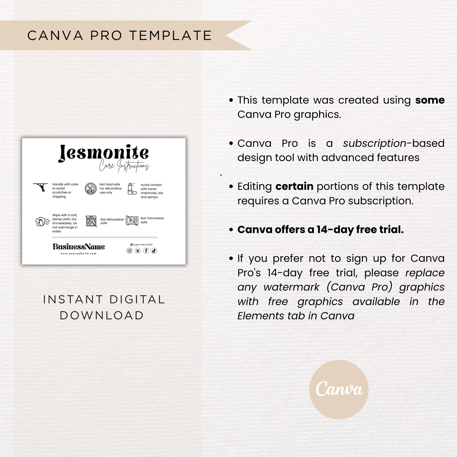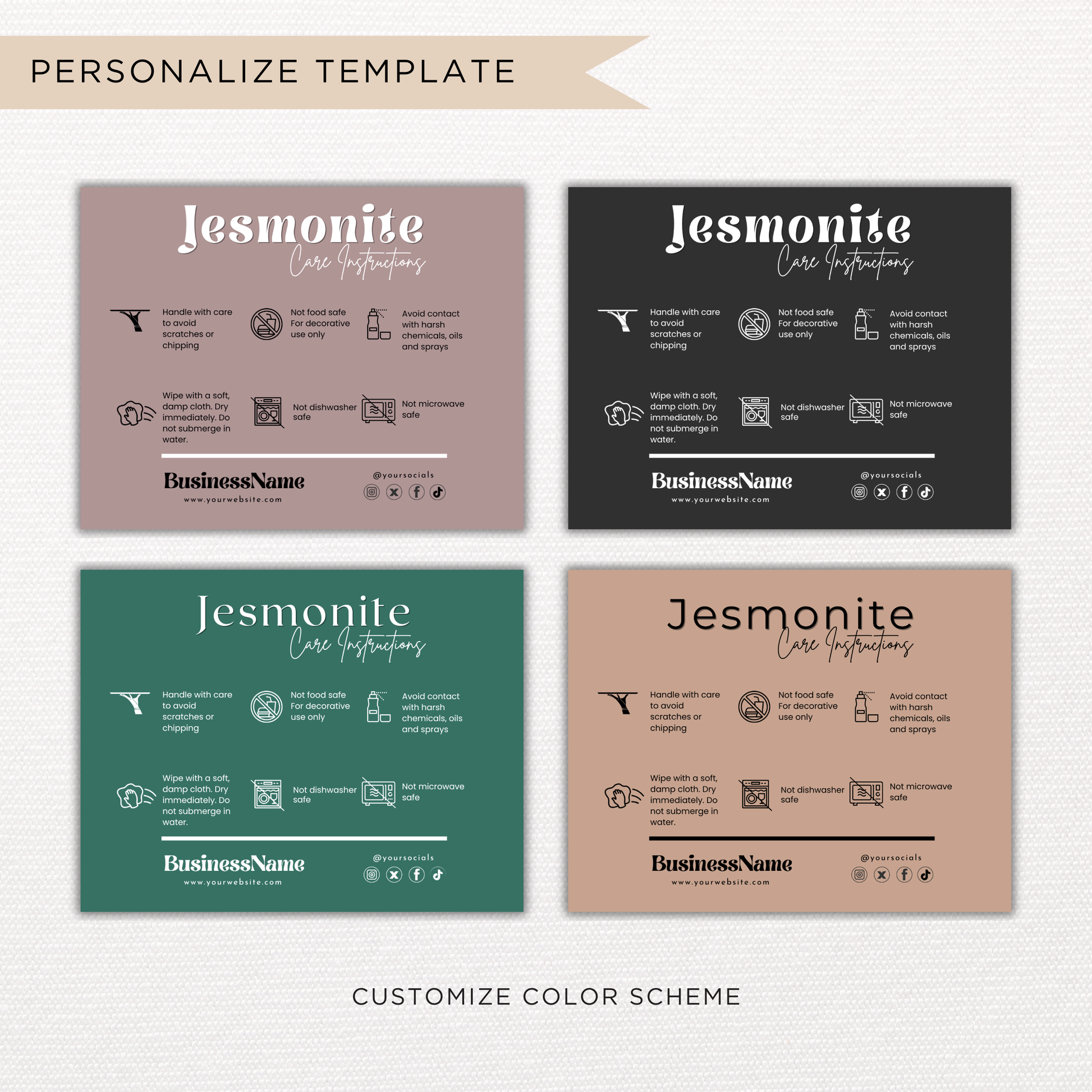 Jesmonite Care Card Template | Canva Template