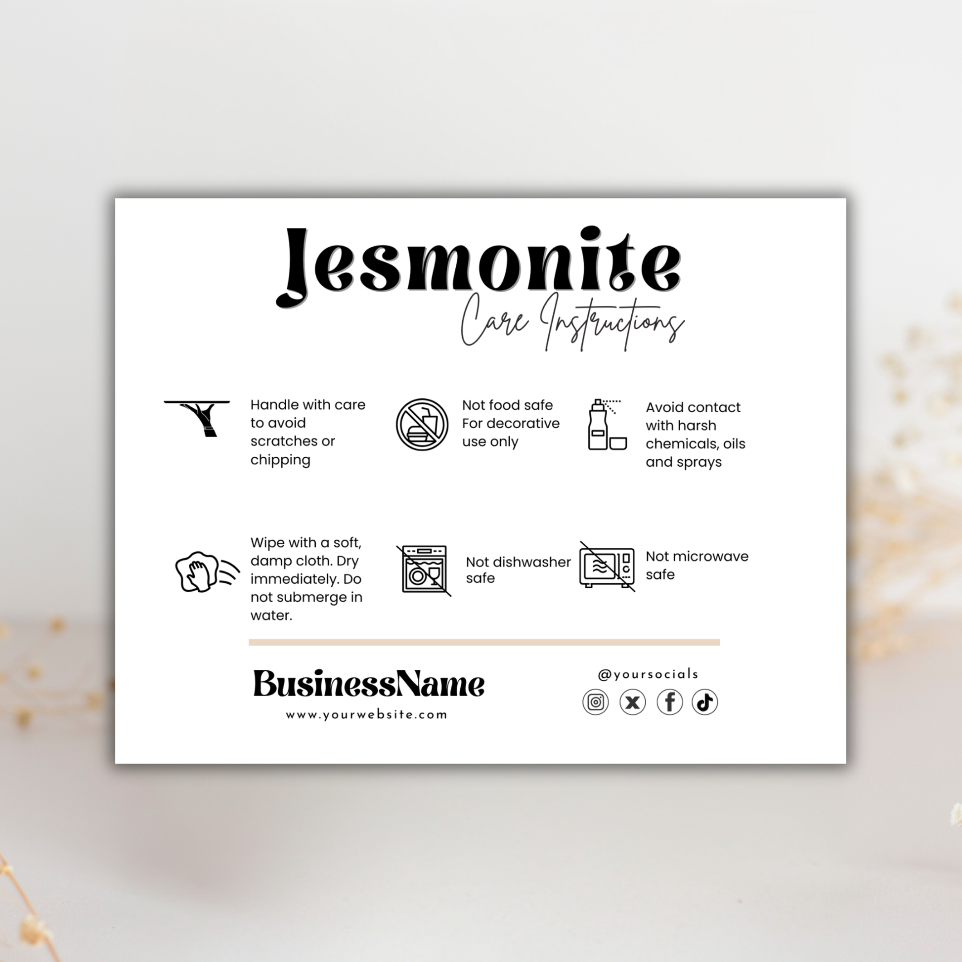• Editable Jesmonite care card template